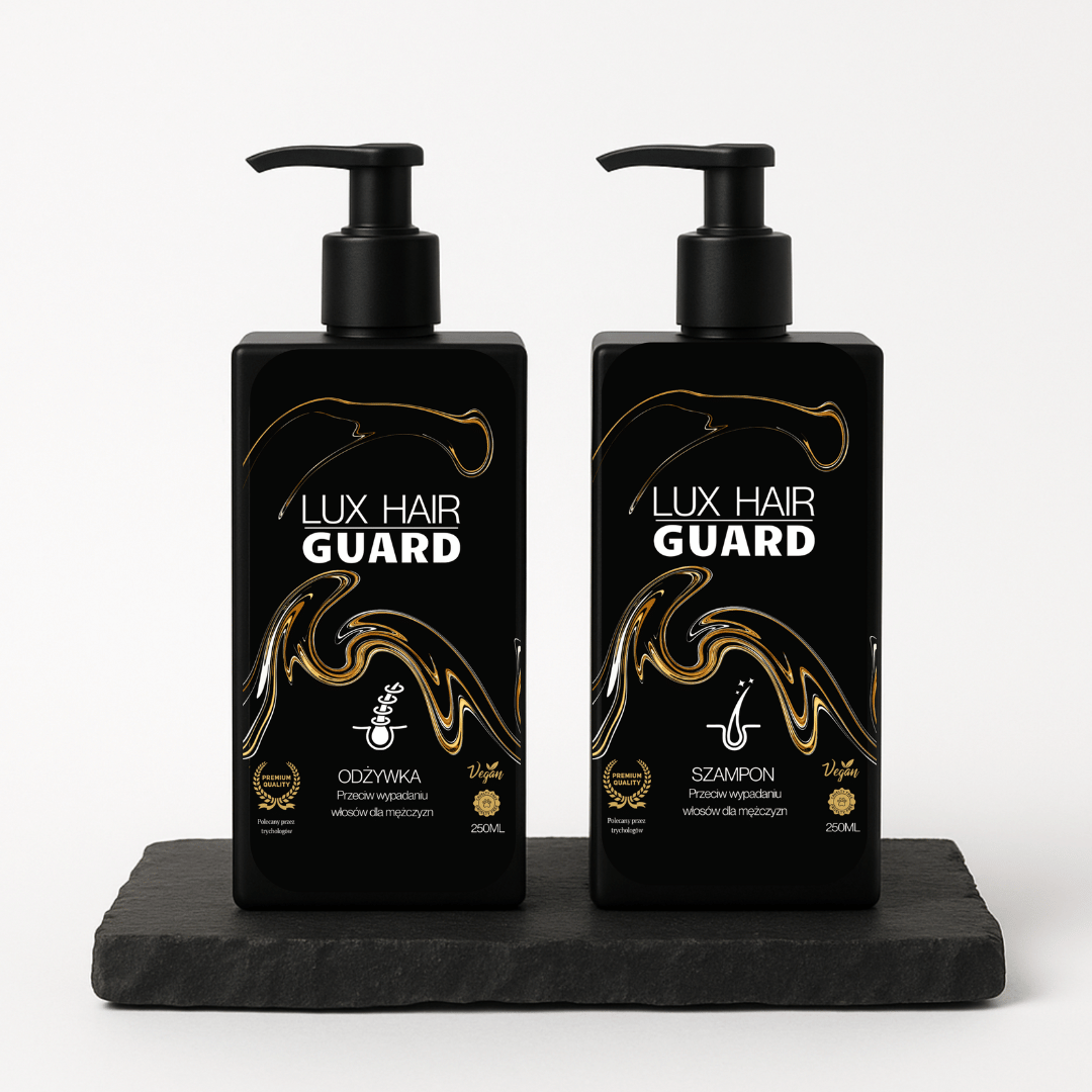 Opracowany przez kosmetologów zestaw LUX HAIR GUARD to kompleksowe rozwiązanie dla mężczyzn zmagających się z przerzedzeniami, zakolami i wypadaniem włosów.